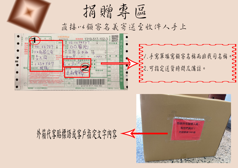 2. 外箱代貼標語或您指定的內容(用紅紙)。