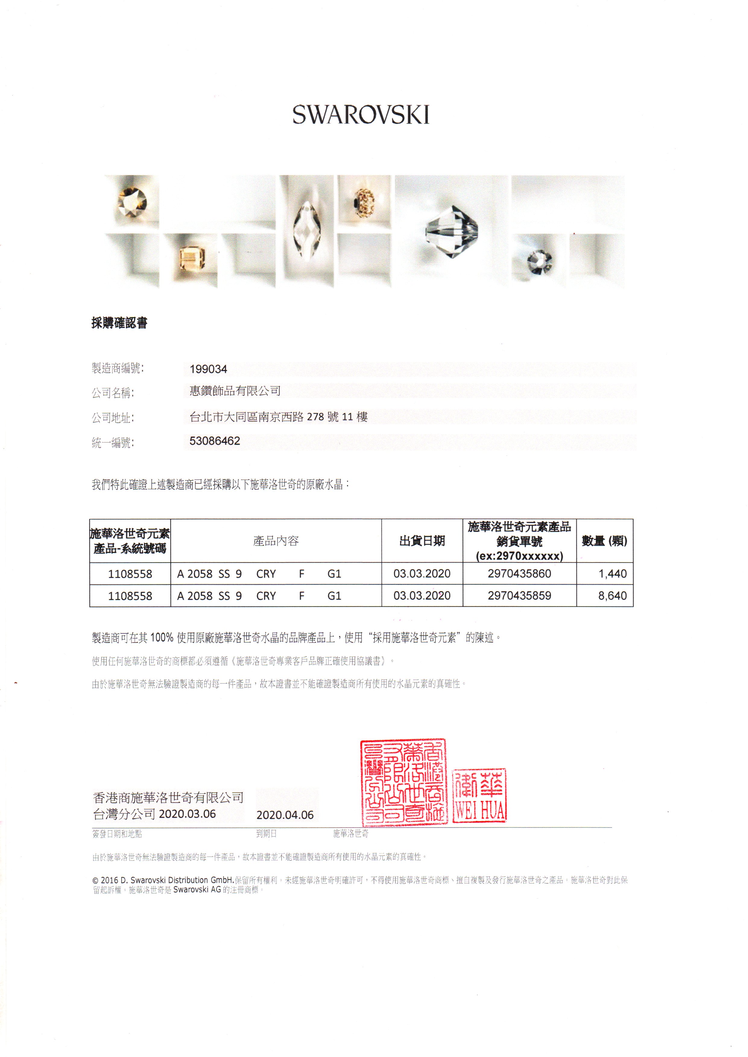 施華洛世奇水鑽.購買證明