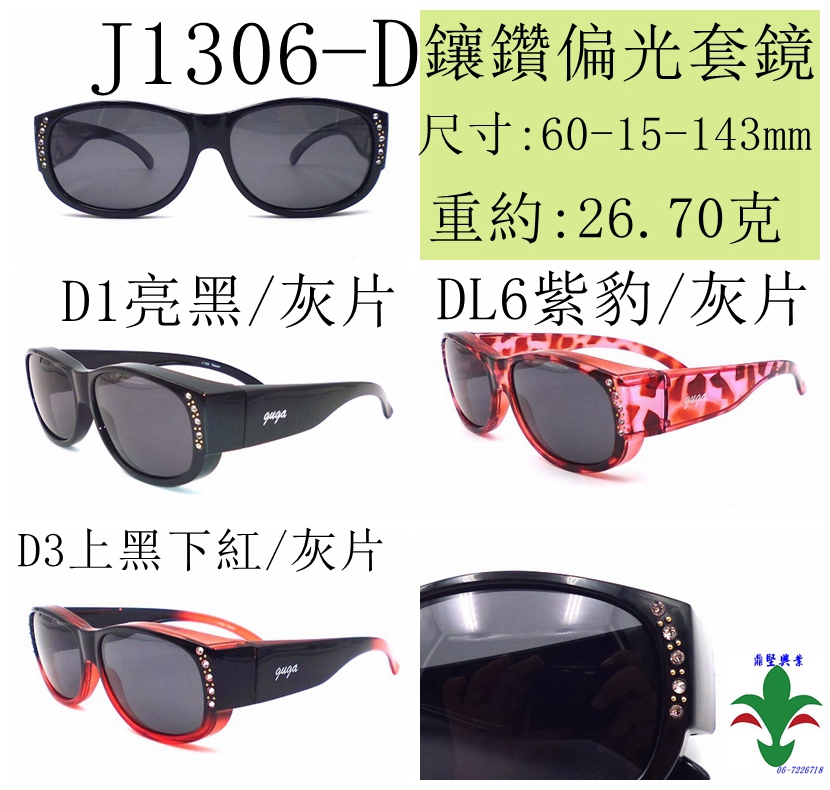 J1306-D 鑲鑽偏光套鏡, 安全強化+抗UV400+抗反射~預防白內障.有效保護眼鏡更勝於傳統鏡片,舒解視覺疲勞! 近視族必備!全包覆偏光太陽眼鏡(近視套鏡)眼鏡不用脫,戴上一秒變墨鏡!