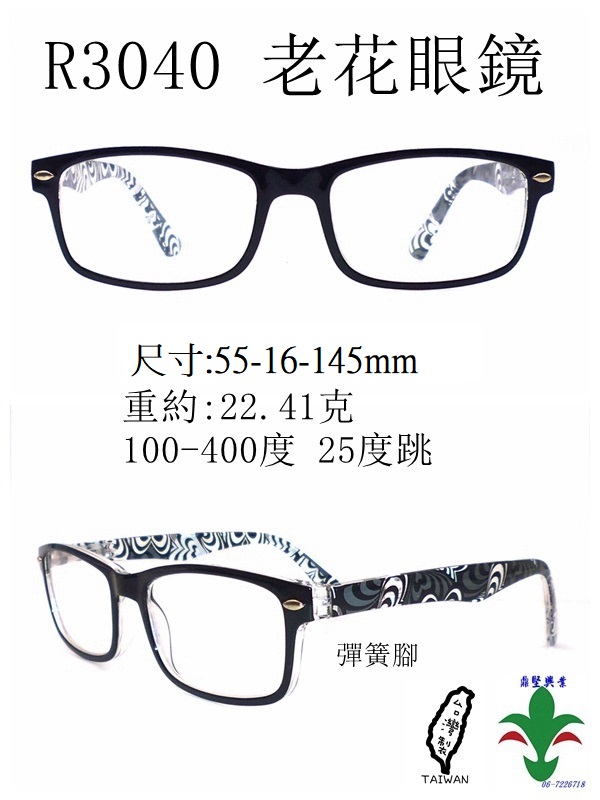 新產品:R3040 老花眼鏡. 眼鏡批發. 台灣製造為鼎堅興業股份有限公司於2021/02/08上市產品
